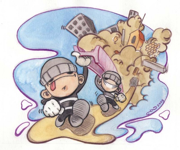 L’última víctima del pillatge de ferregots ha estat l’antiga fàbrica dels Polvorers, a tocar de can Poc Oli, on uns lladregots amb més rostre que consciència van endur-se les bigues de ferro que sostenien l’edifici. L’immoble, que ja s’aguantava amb pinces, va patir els efectes de la manca de suports de manera immediata. Poc després se’n va desprendre la coberta i una mostra més del patrimoni industrial de la comarca se’n va anar en orris. Malauradament, la sensació de misèria als carrers és creixent i el greu és que no sembla que hi hagi una solució a curt termini. Mentrestant, accions com la dels Polvorers— on també habiten individus força indesitjables en condicions d’insalubritat— sembla que ens encaminin cap a una apocalipsi irrenunciable només comparable al Mecanoscrit del segon origen de Manuel de Pedrolo o a aquella cinta titulada Mad Max, que protagonitzava Mel Gibson de jovenet, en què una colla de peluts troglodites es treien els ulls per un bidó de benzina.