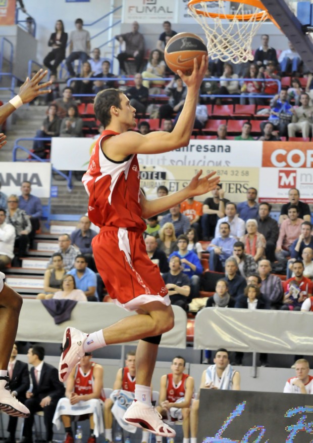Sergiy Gladyr va ajudar en tasques defensives i va ser el màxim rebotejador (7 en total). Foto: Arxiu/Manel Mas