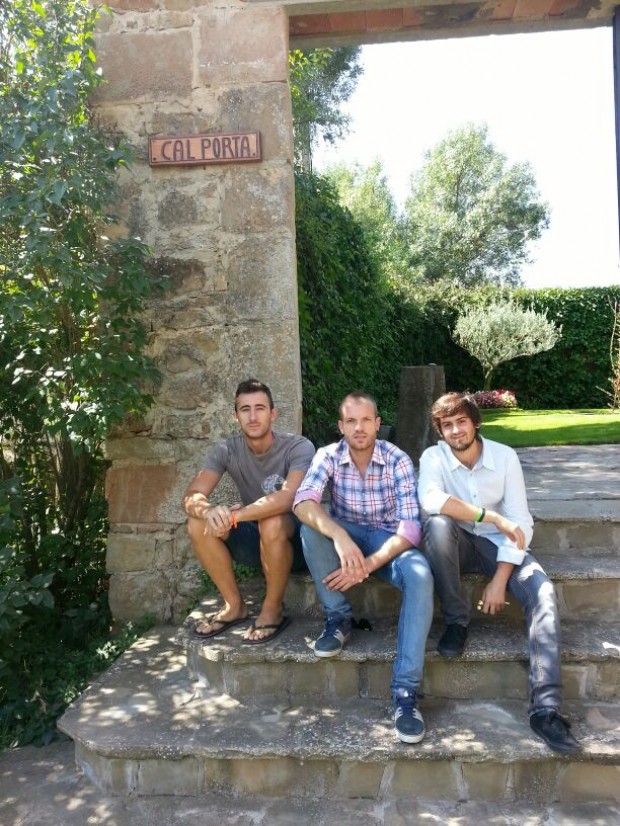 Els tres emprenedors davant de la masia de cal Porta