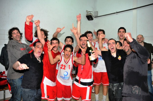 Celebració de l'equip dins del vestidor Foto: Josep Gonzàlez