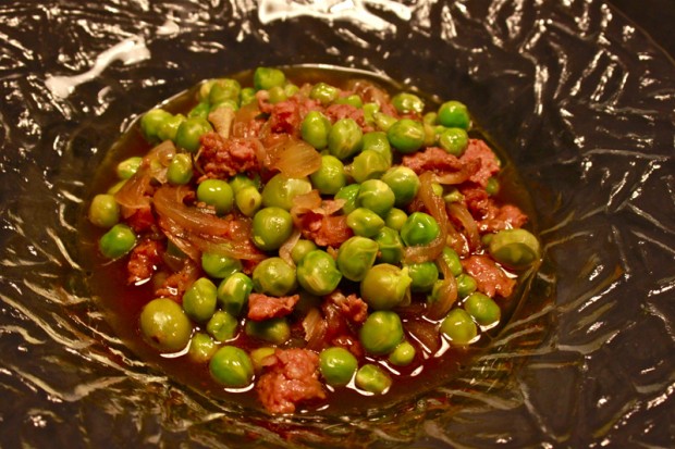 Pèsols ofegats amb botifarra esparracada