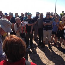 Perquè hi ha gent que, com el cantautor de Verges, es multiplica. El dia 12 d’abril es va renovar l'estelada a Collbaix. Novament el Centre Excursionista de la Comarca del Bages va organitzar la iniciativa en col•laboració amb l'Assemblea Nacional Catalana. Pels que fan camí fins al cim no hi falta mai un tros de coca i xocolata. Aquest any, però, la xocolata es va fer esperar una mica perquè la traginava el Josep Emili Puig i pujava amb els últims. En el seu cas va ser arribar i moldre i l’home encara va tenir temps d’adreçar unes paraules als participants. Fos perquè esbufegava o per la poca potència dels megàfons, no va dubtar a aplegar-ne dos per fer-se sentir millor. Ho veiem a la foto. Una mica marcià, a cop d'ull, però pràctic.
