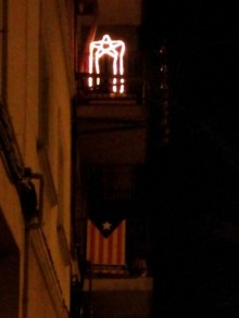 I és que passejant pels carrers hom queda estorat cada dos per tres. L’estelada de la foto que publiquem i que ens ha fet arribar un lector que volta nit i dia és del carrer de Guifré el Pilós. En un altre balcó de l’edifici hi ha una ensenya de roba i, per no ser menys, el veí ha aprofitat un dels llums decoratius d’exterior que es venen per Nadal per fer-li agafar la forma d’una estelada. Una iniciativa curiosa que, a part de ser reivindicativa, rendibilitza la il•luminació que durant l’any hem de tenir desada en punts de la casa recòndits i empolsinats.
