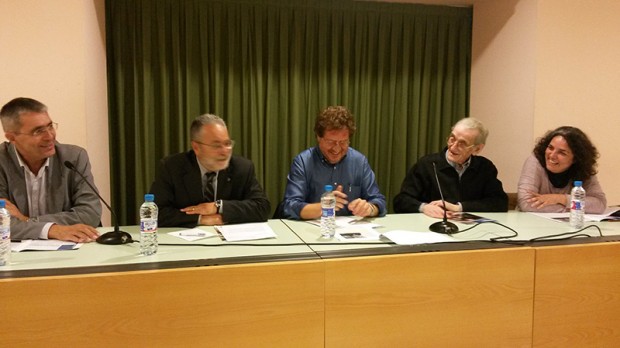 Pere Bonet, president de la Junta comarcal del Col·legi de Metges; Ricard Cots, reumatòleg ; Pere Culell , cirurgià de l’Hospital de Sant Joan de Déu, i Armand Rotllan, metge i membre de l’Arxiu Històric de Ciències de la Salut Simeó Selga, moderats per Sílvia Berengueras, redactora d' El Pou de la gallina .
