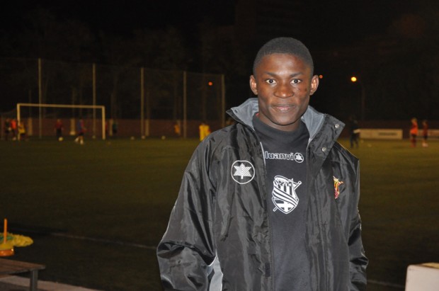 Al CE Manresa no som professionals, tot i que sí que es cobra alguna cosa. Juguem a Primera Catalana, que és una bona categoria en què ja tens visibilitat… M’agradaria seguir aprenent i potser arribar a un equip de més nivell. Qui ho sap. De mica en mica. De moment estic tranquil i molt bé. A Ghana ja havia jugat, primer a l’escola i després en una mena de selecció comarcal. En arribar aquí, primer vaig jugar al Gimnàstic, després a la Font i ja em va fitxar el Manresa, primer el juvenil i ara el primer equip. Sóc davanter, l’any passat vaig ser el màxim golejador del primer equip, vaig fer 21 gols a la lliga. Aquest any n’he marcat dos, de moment. Em vaig perdre els primers partits, a causa d’un canvi de normativa, provocada per la sanció que va rebre el Barça sobre el fitxatge de jugadors menors. Tot el primer mes no vaig poder jugar i vam haver de presentar una autorització del meu país a la Federació, però ara ja està resolt. Entrenem tres dies a la setmana, i a banda també faig d’ajudant de l’entrenador de l’equip benjamí.