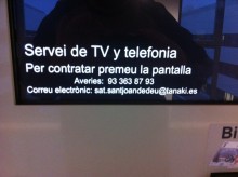 Continuant amb els temes lingüístics que tan m’enerven, també reprodueixo la imatge que m’ha passat un dels nostres col·laboradors que, a finals de desembre, va tenir ingressat un familiar als nous mòduls de l’hospital de Sant Joan de Déu. La fotografia és de la pantalla de l’aparell que hi ha en un passadís per poder llogar el dret a encendre el televisor. En definitiva, és l’artefacte que ja fa temps que va substituir la caixa de monedes que hi havia a les habitacions. La concentració de faltes d’ortografia és densa. Cada línia té una pífia majúscula. S’ofereix un servei “de TV y telefonia”, s’indica que per “contratar” cal prémer la pantalla, i, finalment, es proporciona un telèfon per “averies.”. Com que refer la titulació deu ser relativament senzill i s’actualitzarà a tots els terminals que tenen a l’hospital, els insto perquè hi posin remei.