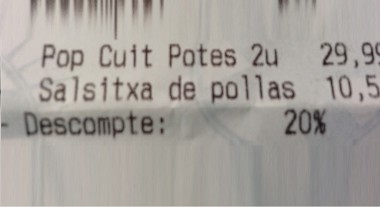 Els ordinadors i les impressores juguen males passades i sol passar que, quan volem imprimir algun cartell, ens adonem que no queda tinta o s’ha acabat el paper. En altres casos, els problemes són de composició o d’espai. Les màquines registradores modernes deixen introduir els noms de tots els articles i això permet que quedin especificades en el tiquet final. Però el nombre de caràcters per article és limitat. Per això, en un tiquet del Garoina del Passeig que m’envia una lectora, hi consta que va comprar ”salsitxa de polla”. Es clar que només és un suposar... De fet, si hagués de presentar el tiquet a algú, segur que li resultaria un pèl incòmode.