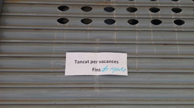 Al devastat carrer de Sant Miquel, un amable lector hi va retratar aquest rètol a la porta d’un comerç tancat per vacances. Suposo que, en el moment d’imprimir-lo, els propietaris no sabien quan tornarien a obrir i hi van deixar un indefinit “fins...”. La cosa va quedar matada amb la inclusió, amb retolador blau i en castellà, “d’agosto”. El que caldrà veure és si el comerç torna a obrir portes o les vacances continuen.