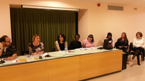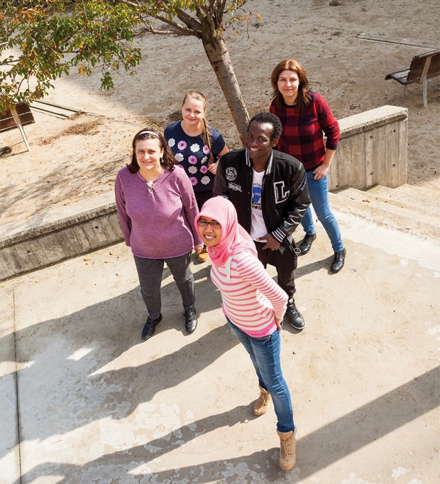 D'esquerra a dreta, Ana Kardum, Mariana Kostiak, Svitlana Brayila, Nana Yadom Adarkwah i Evi Sa’adam, alumnes del Centre de Normalització Lingüística Montserrat. Foto: Francesc Rubí