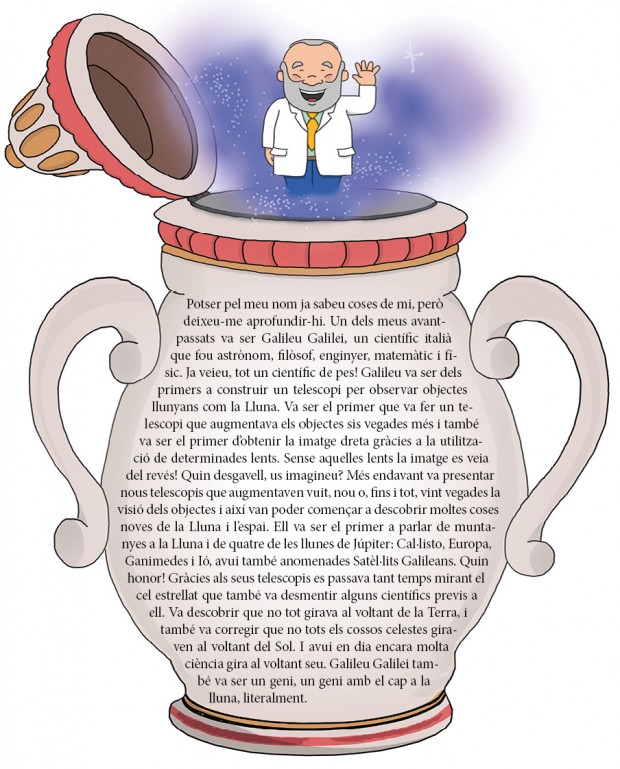 CIÈNCIA DE POT. Perdoneu que no surti amb música i focs artificials, però és que l'últim any he estat molt ocupat collint, esprement, i preparant-vos sucosos pots de ciència. Ja tenia ganes de sortir a estirar les cames i saludar-vos! Sóc Gallineu Gallinei, el vostre geni de pot.