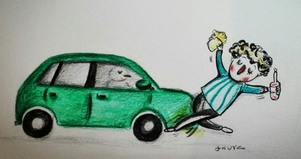 Qui no recorda aquell famós anunci de la direcció general de Trànsit per prevenir els accidents de carretera en què Steve Wonder demanava de no conduir begut: «Si bebes, no conduzcas», o el que és el mateix, “Don't drive drunk”, tema creat pel cantant, compositor i activista social per a la pel·lícula "La dona de vermell". D'això fa ja més de trenta anys i l'eslògan es manté viu en el record i vigent a la realitat, ja que l'alcohol continua essent una de les causes principals de la sinistralitat a les carreteres. D'un temps ençà, però, i en això Manresa és capdavantera, els atropellaments urbans són deguts als mateixos vianants que, sota l'efecte de l'alcohol, travessen a la babalà. D'aquí que, en aquests casos, qui és sotmès a la prova d'alcoholèmia sigui el vianant atropellat. En bona lògica, qui provoca un accident –a banda que la víctima sigui el mateix causant– hauria de poder ser sancionat, per més vianant que sigui. A Manresa, en aquests darrers dies s'han produït dos accidents en què, sortosament, els vianants infractors n'han sortit prou ben parats. Per ser justos, ara només caldria que els atropellats paguin el beure.