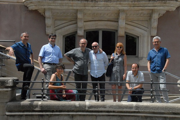 Foto: Alguns dels components del col·lectiu Lola Palau. D'esquerra a dreta: L. Capdevila, D. Clusellas, P. Duocastella, J. Estrada, Pep Garcia, M. Dolors Guàrdia, A. Pladevall i Josep M. Solà (Arxiu Edicions de L'Albí)