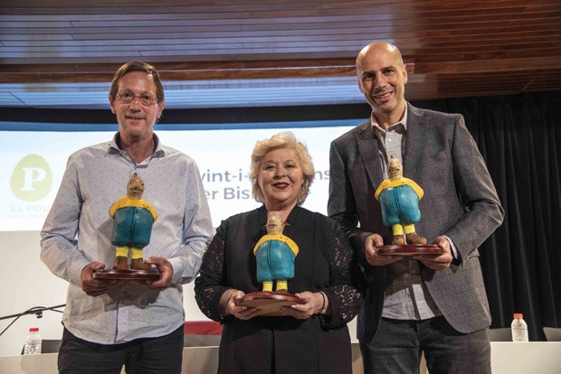 Després del debat, es va fer el lliurament dels vint-i-quatrens Premis Oleguer Bisbal , escollits com sempre per votació popular entre els lectors de la revista. Els guardons d’aquest any, modelats per Aurora Pérez sobre el personatge creat pel dibuixant Manel Fontdevila, es van atorgar a la periodista Pilar Goñi , directora del grup Taelus, Canal Taronja i Ràdio Manresa (Premi Oleguer Bisbal 2019 a la “manresana més manresana”); a Josep Sorinas , del Frankfurt Cal Manel (Premi Oleguer Bisbal 2019 al manresà del Pou), i a l’entrenador del Baxi Manresa, Joan Peñarroya (Premi Oleguer Bisbal 2019 al manresà d’actualitat).