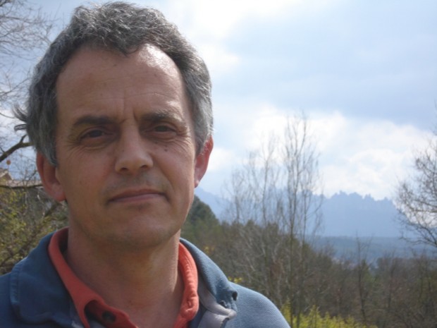 Toni Llasera envoltat de naturalesa, amb Montserrat al fons. Foto: Sílvia Berengueras