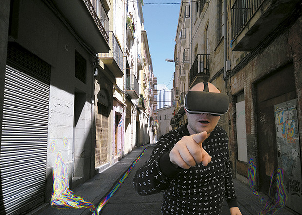 Per maquillar aquesta situació depriment, l’Ajuntament de Manresa va contractar una empresa perquè desenvolupés experiències 3D per a ulleres de realitat virtual (RV). L’objectiu, evitar que els turistes que visitaven la capital del Bages veiessin la decadència comercial. Així, en els carrers comercials històrics de Manresa, on el percentatge de locals buits era alt, s’obligava els turistes a travessar-los equipats amb ulleres de RV i amb l’ajuda de guies. Carrers decorats i plens de vitalitat, comerços infestats de compradors i productes per a tots els gustos... Aquest viatge per carrers maquillats satisfeia els visitants, però també s’emportaven de record un bon mareig i la corresponent vomitada al mig del carrer. Per sort, la realitat virtual substituïa les riuades d’èmesi amb torrents dels colors de l’arc Sant Martí.
