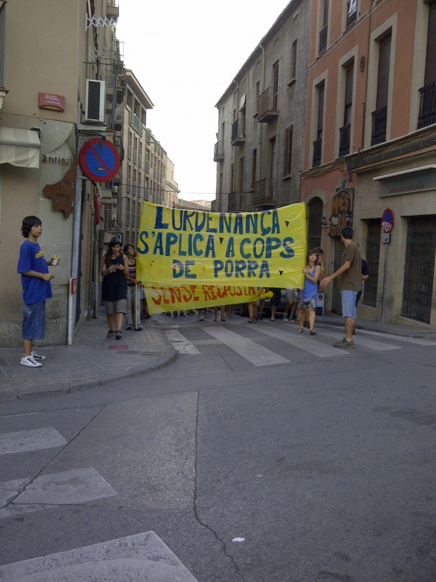 ordenança municipal : “El dia 24 va entrar en vigor i el dia 29 ja hi ha càrregues brutals; que no ens passi res!” , apuntaven els concentrats. Recurrents van ser també les crítiques als agents per no portar cap mena d’identificació.