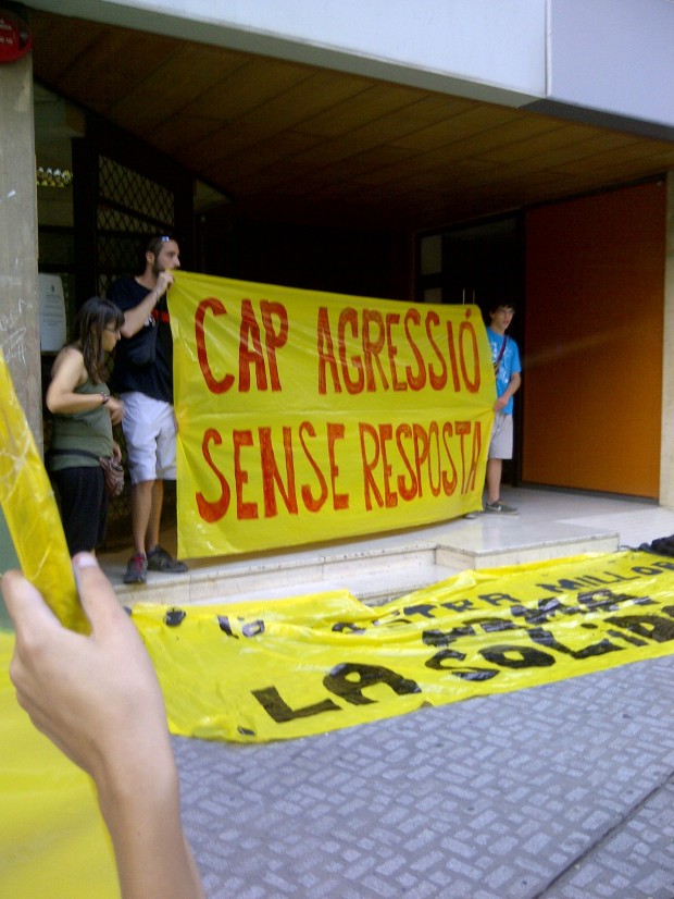 A la seu del partit que ocupa el govern municipal els manifestants van demanar la dimissió de la regidora de Seguretat Ciutadana Olga Sànchez, i van enganxar dues pancartes: