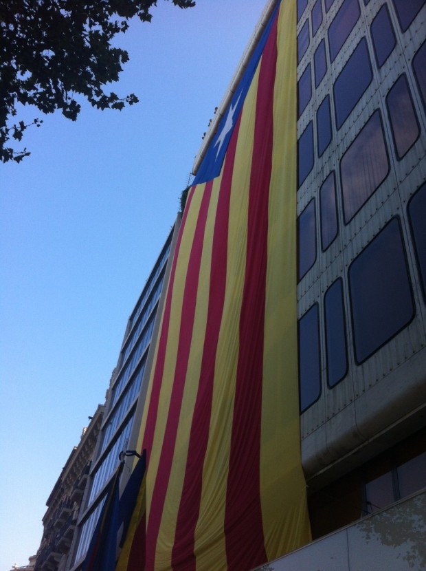 L'estelada de Bages per la Independència al Passeig de Gràcia de Barcelona. Probablement l'ensenya més gran de la manifestació: 15 x 31m i 71 kg de pes. cosida a Sant Vicenç de Castellet Foto: Carles Claret