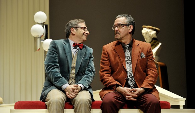 'La extraña pareja'. El teatre, ple a vessar de jubilats, va viure una tarda de riure sanitós, d'expansions contínues, per culpa d'un triangle amorós exasperant.