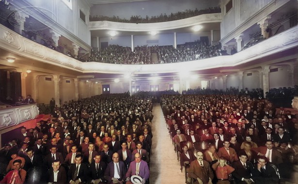 En qualsevol cas, ens captiva la diversitat de cares abans de l’espectacle, que omplen des de la platea fins al capdamunt del galliner, en un moment de tempteig i canvi de cicle: manresans com els que apareixen a la foto, i a les acaballes de la dictadura de Primo de Rivera, el 25 de maig de 1929 encara es van abocar entusiasmats a celebrar la imposició de les insígnies de capità general a les banderes del Bruc, en un acte que va comptar amb la presència del rei Alfons XIII, el