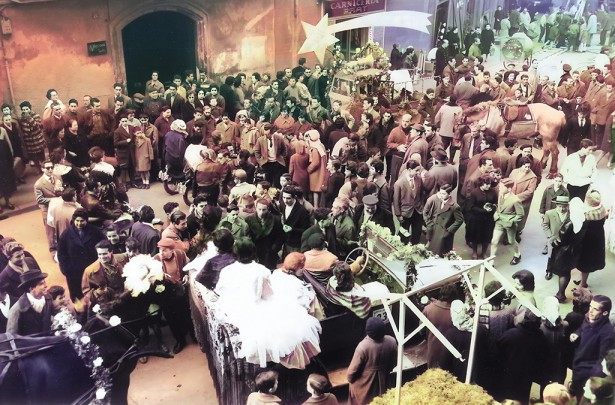 La foto, feta per Marià Lladó a la Plana de l’Om, ens sorprèn. Ara, malgrat les dificultats d’acoloriment, la composició cobra vida, en un guirigall d’artistes, tècnics i públic embadalit. L’argument és senzill, tal i com Carles Claret, al