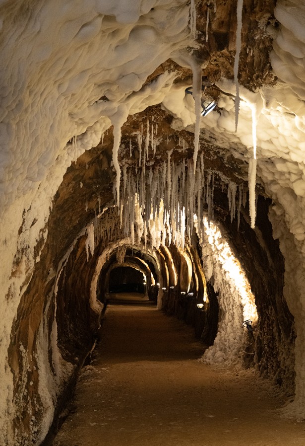 Galeria de la Muntanya de Sal de Cardona amb estalactites de sal Foto: Enric Casas