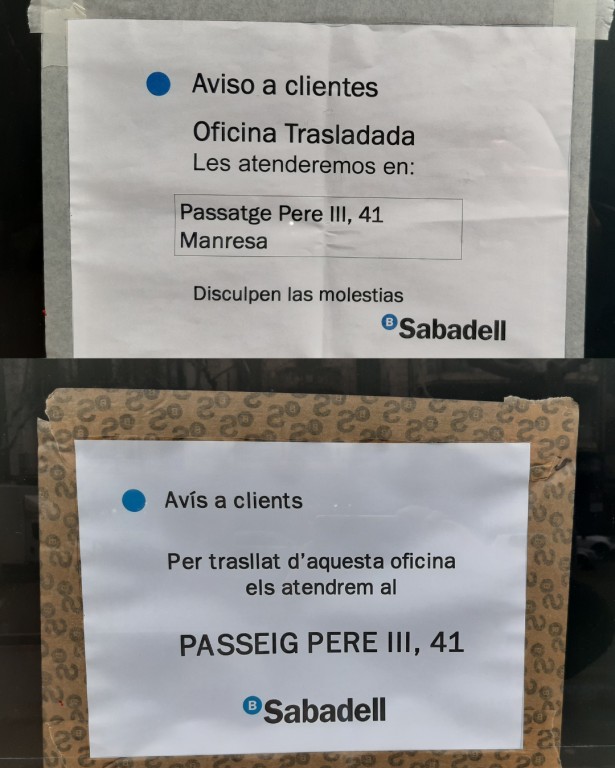 Una rere l’altra, les oficines del Banc de Sabadell que hi havia a Manresa han anat desapareixent fins a quedar-ne només una. La darrera a clausurar-se és la que hi havia al tram de Passeig de la Bonavista, que ocupava el local on abans hi havia hagut Caixa Penedès. En tancar portes, un