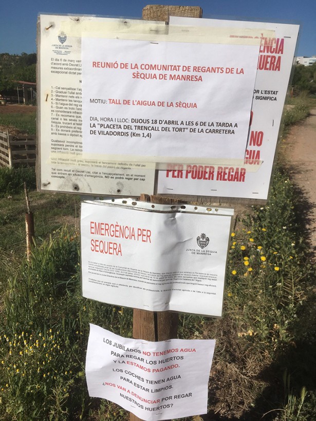 Aquests dies, arran de la sequera i les mesures que pren l’administració, la comunitat de regants de Viladordis i el Poal estan revoltats. La Junta de la Séquia ha tallat dràsticament l’aigua sense avís previ i això ha comportat que s’estiguin organitzant per fer mobilitzacions i altres iniciatives per denunciar-ho. De moment ja van fer una primera concentració on van participar prop de 200 usuaris. Alhora, també han enviat un escrit a l’alcalde i president d’Aigües de Manresa i amenacen de tallar carreteres. I és que el regadiu, tan important a la ciutat, mereix que es tingui en consideració. La sequera és molt greu, però les formes s’haurien de guardar.