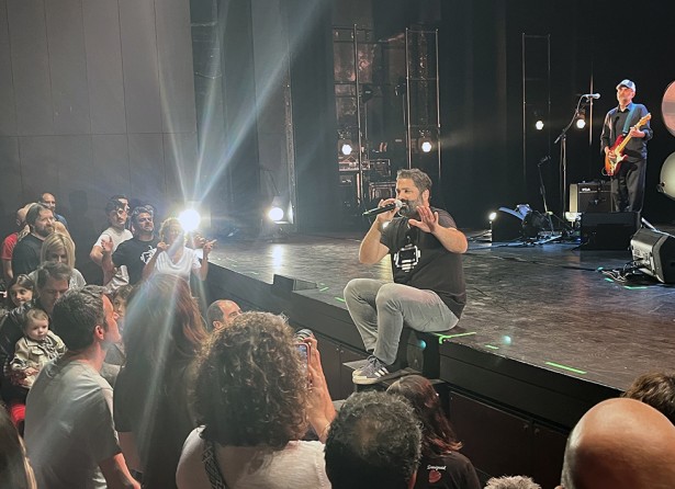 Si ens atenem al ple absolut dels dos concerts del 6 i 7 d'abril, i a l'entusiasme desbordant de tants manresans a l'hora de cantar, hem de donar per fet que la ciutat és —després de sant Ignasi— devota dels Antònia Font. I amb quin gust rallaven tots mallorquí, que semblaven intoxicats d'ensaïmada i cocarrois! A la foto, en primer terme, el vocalista Pau Debon i, de fons, en Joan Miquel Oliver, compositor de la banda.
