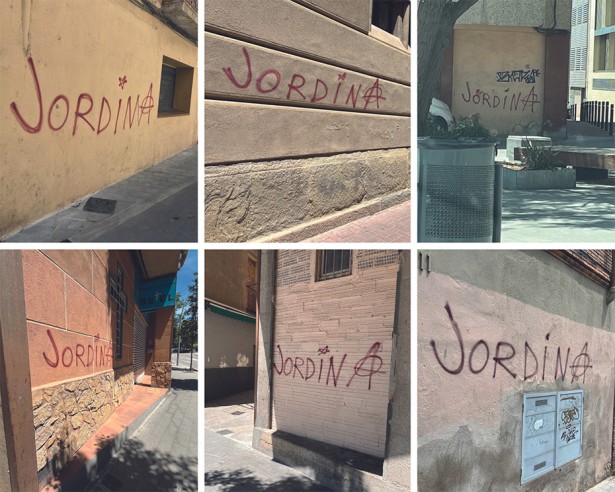 Si feu un recompte de les parets on ha aparegut una pintada referida a la Jordina quedareu astorats. La cosa ja fa setmanes que dura: Jordina és una pintada reiterada als carrers de Manresa. L'escriu la mateixa Jordina? És un cas de personalitat narcisista? Si és així, la ciència té recursos, i l’angoixa es pot corregir pintant mandales. Si l’autor de la pintada és algú altre, i saps qui és, Jordina, digues-li sisplau que pari, que ja està bé, que ja veiem que li interesses. Però que no cal embrutar més Manresa!