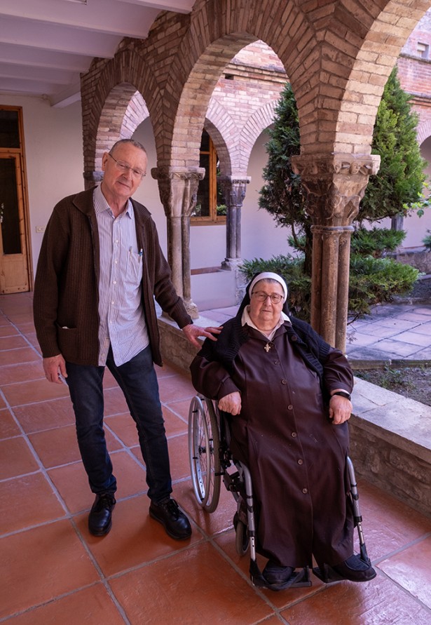 Pilar Lumbreras amb el Pare Morros, vint-i-dos anys fent cada dia missa per a la comunitat Foto: Enric Casas