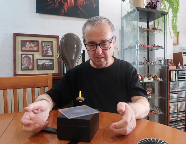 Josep Torras fent girar la baldufa voladora Foto: Jordi Estrada