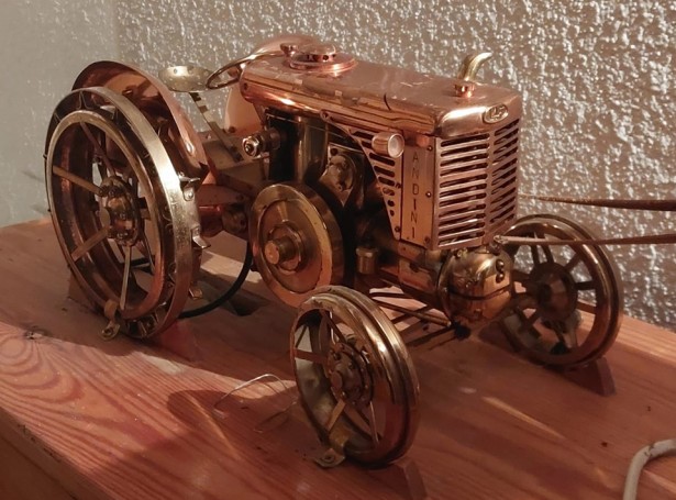 Maqueta a escala i en funcionament d'un tractor Landini, construïda per Albert Torras Foto: Arxiu familiar