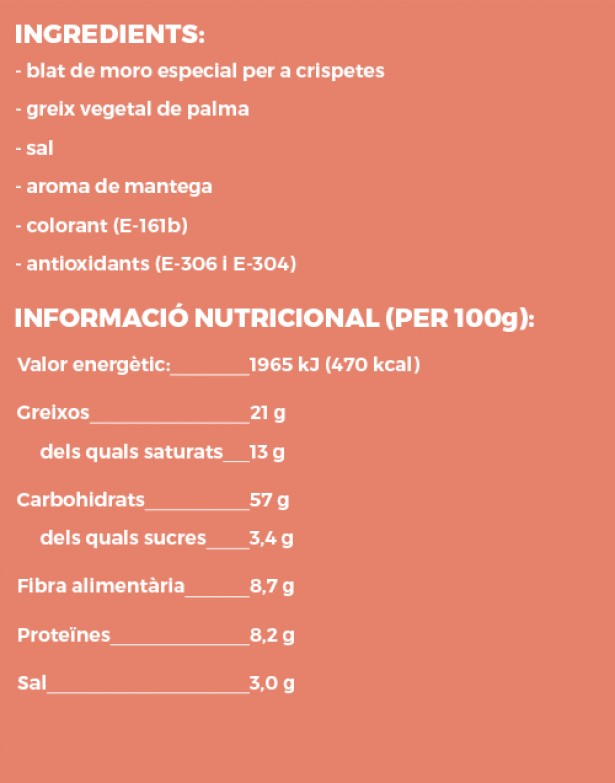 Cal tenir en compte algun punt rellevant a l’hora de comprar-les? Revisem l’etiqueta associada a les crispetes que hem preparat per a la secció d’avui per respondre a aquesta pregunta: