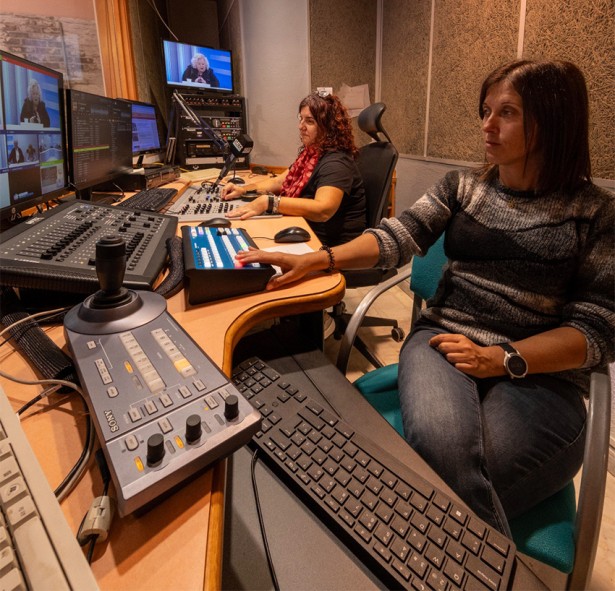 Eli Pagan i Gemma Aleman a la sala de control dels estudis de la Ràdio Foto: Enric Casas