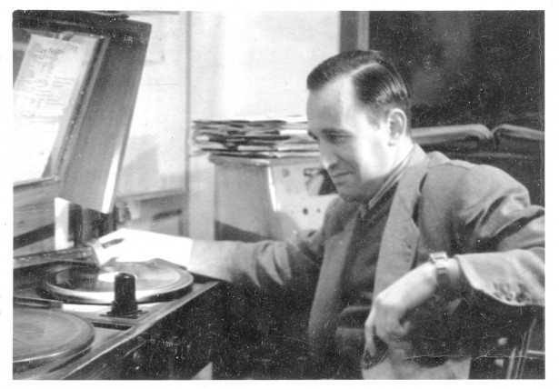 Any 1949, Josep Torruella Agramunt provant discos a l'estudi de Ràdio Manresa. Era el tècnic més reconegut i ja era a les emissions de Ràdio Club des de 1932 Foto: Fons de Josep Mira i Pons