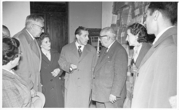 23 de novembre de 1957. Lliurement a València de la roba i dels donatius recollits per Ràdio Manresa i el periòdic Manresa en ajuda als damnificats per la riuada del Túria Foto: Fons de Josep Mira i Pons