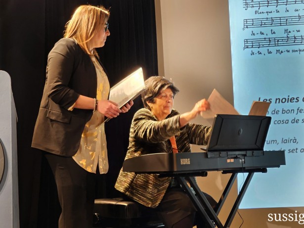 Cançons i jocs d’infants de Manresa, ja l’havia presentat prèviament al Claustre del Museu). Doncs bé, fent gala del seu ofici, la Glòria hi va fer de conductora de l’acte, de conferenciant... i va cloure l’acte acompanyant al piano Mireia Subirana, exdirectora de la Capella de Música de la Seu. Tots els papers de l’auca!