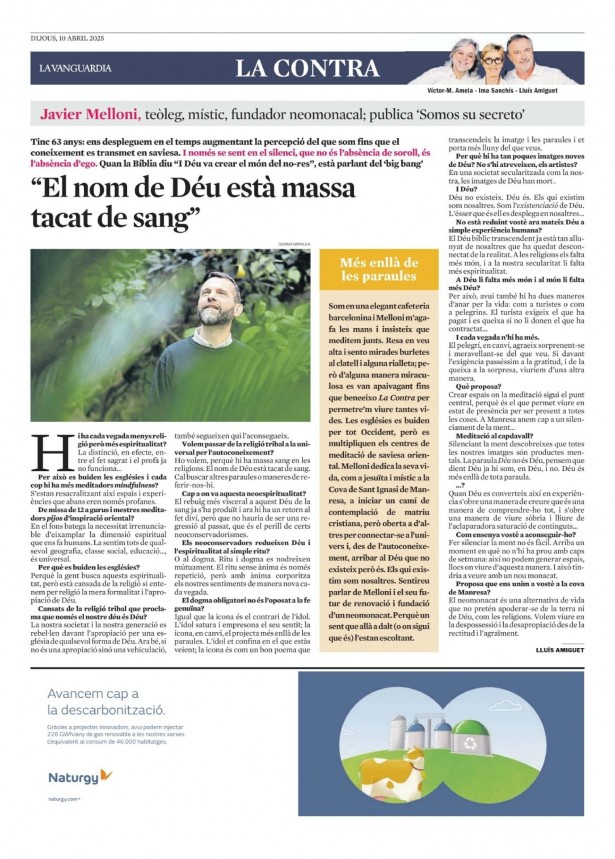 Contra amb un altre manresà –si més no, d'adopció–, el jesuïta i teòleg Xavier Melloni, de la Cova de Sant Ignasi, arran de la publicació del seu darrer llibre, el poemari