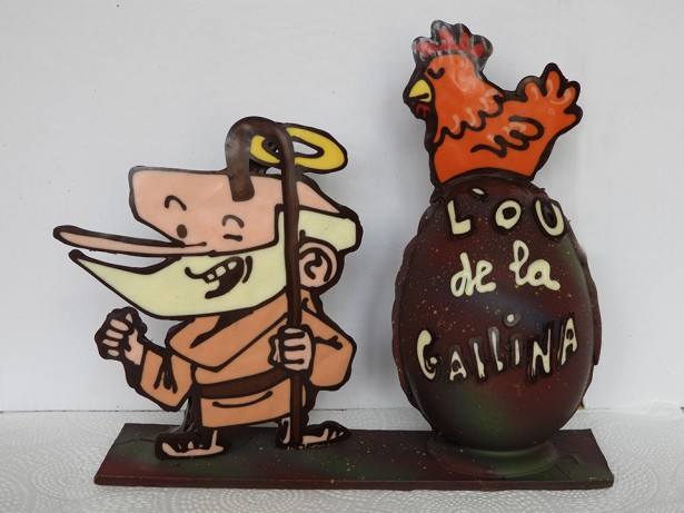 I per acabar la bugada del mes, em plau fer-ho amb la reproducció de la figura de l’ou de xocolata del Pou de la Gallina i Sant Ignasi de Loiola, en la versió que en fa el dibuixant Galdric Sala per a
