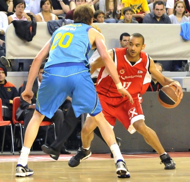 Víctor Sada no va tenir problemes per defensar els bases de l'Assignia. Foto: Manel Mas