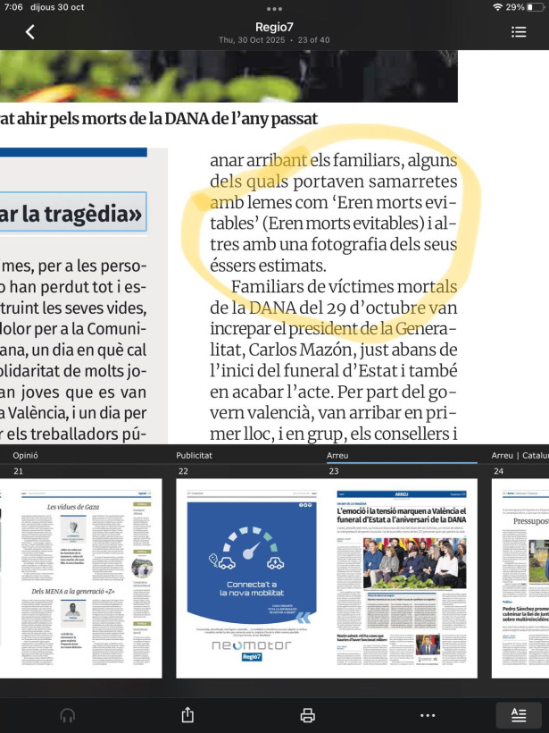 Regió7. És ben cert que hi ha repeticions que són evitables i a l’edició digital del diari del 29 d’octubre en tenim un exemple. S’hi publicava la informació sobre el funeral d’estat en record de la dana al País Valencià, ara fa un any. La informació, com es pot comprovar, provenia del diari