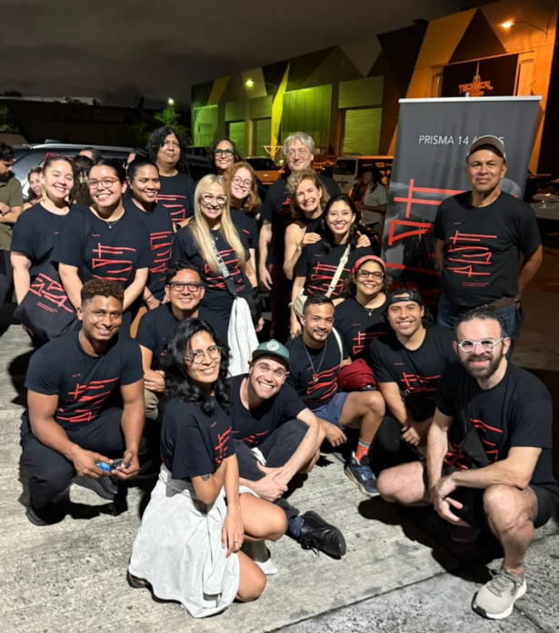 Fanal de cua, acaba de tornar de Panamà, on el van convidar per fer-hi un taller d’escriptura «de lo efímero», manera àmplia i delicada de denominar una dansa que ja no es deixa classificar pobrament. “El taller va anar molt bé”, m’explica. “Era un grup de vint, i tots escrivien meravellosament”. Com a mostra del bon rotllo, em passa una foto de la nit en què van anar tots junts a fer un escrit d’un espectacle, amb la samarreta del festival.