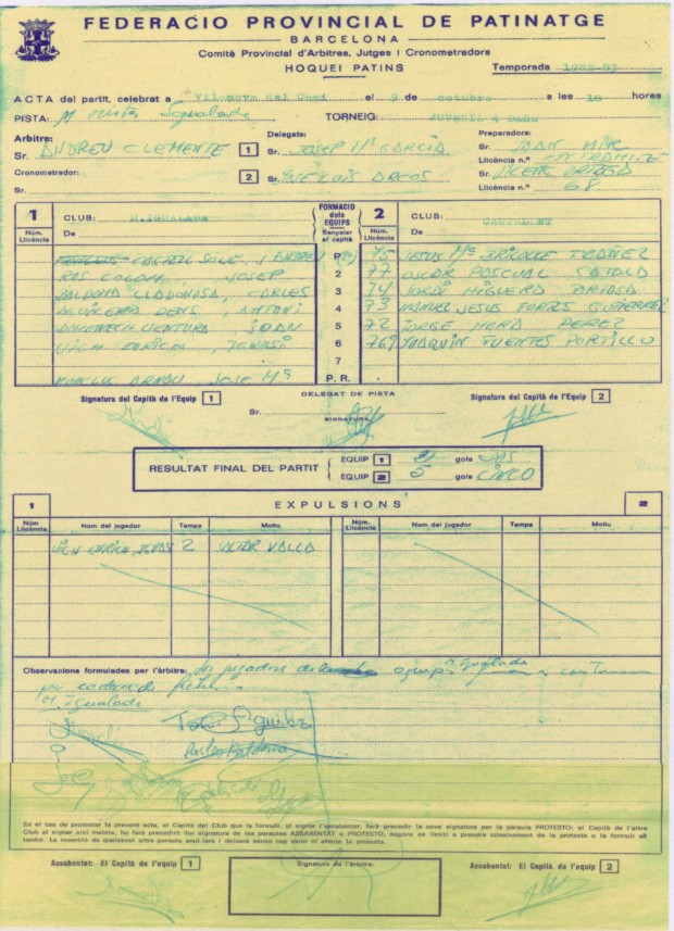 Primera acta del Club Hoquei Castellet, l'any 1982.