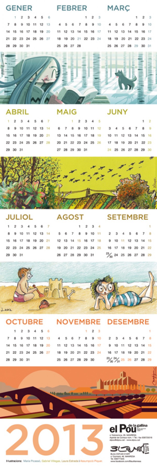Calendari del Pou per a l’any que ve, dissenyat per l’Estudi Blau de Manresa, amb il·lustracions de Laura Estrada, Maria Picassó, Assumpció Piquer i Gabriel Villegas. També en tenim a la nostra redacció del c. Sobrerroca, 26, que lliurem gratuïtament fins a esgotar-ne les existències.