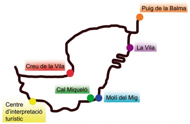 Després d'aquesta segona parada, retornem al punt d'inici, el Centre d'Interpretació Turístic, pujant per una pista de ciment, arribant a la carretera i girant a mà dreta.