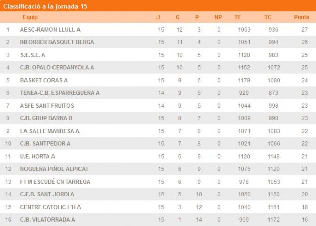 LA SALLE MANRESA 76: Virós 9, Corominas 2, Llort 10, Boix 11, Aguilera 8 –cinc inicial- Caballer 12, López 12, Cornet 6, Moreno 6, Fernández