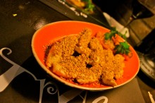 Tot seguit ens decantem per plats més proteics; unes escalopines de pollastre amb sèsam i mel, i el bacallà amb ceba caramel·litzada. Serien una clara representació del joc de dolç i salat en el qual ens veurem involucrats si fem un àpat a El Traster. Però la llista de possibilitats és llarga, i tot jugant amb els productes de temporada, podrem optar per unes broquetes de vegetals de proximitat, una remenat d’espàrrecs amb calamars saltejats, les seves creps combinades amb tot tipus d’ingredients, filets de vedella amb formatge de cabra o foie i moltes d’altres combinacions que fan pensar al comensal sobre com distribuir-se l’àpat, ja que a aquí, com a l’ambientació del local, hi regna l’anarquia culinària clàssica, i els entrants, primers i segons han quedat fora a l’entrada. El que compta és la teva gana. I nosaltres ens devíem passar de llestos, perquè no vam aconseguir arribar a les postres amb suficient lloc a l’estómac.