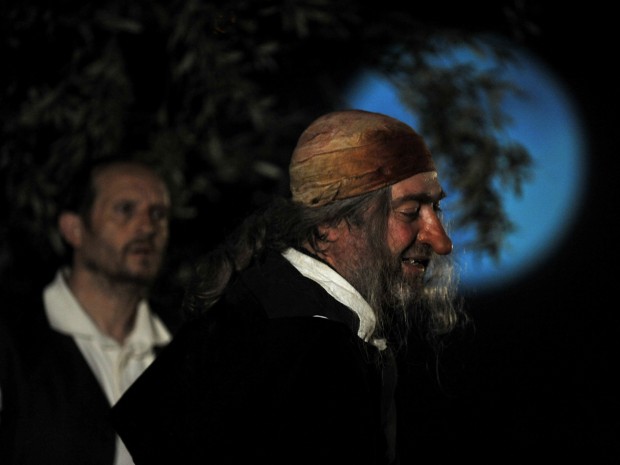 Ramon Vila, que fa de le Bret, company de Cyrano, mira el seu amic envellit pel dolor de la lluna. Foto: Bito Cels