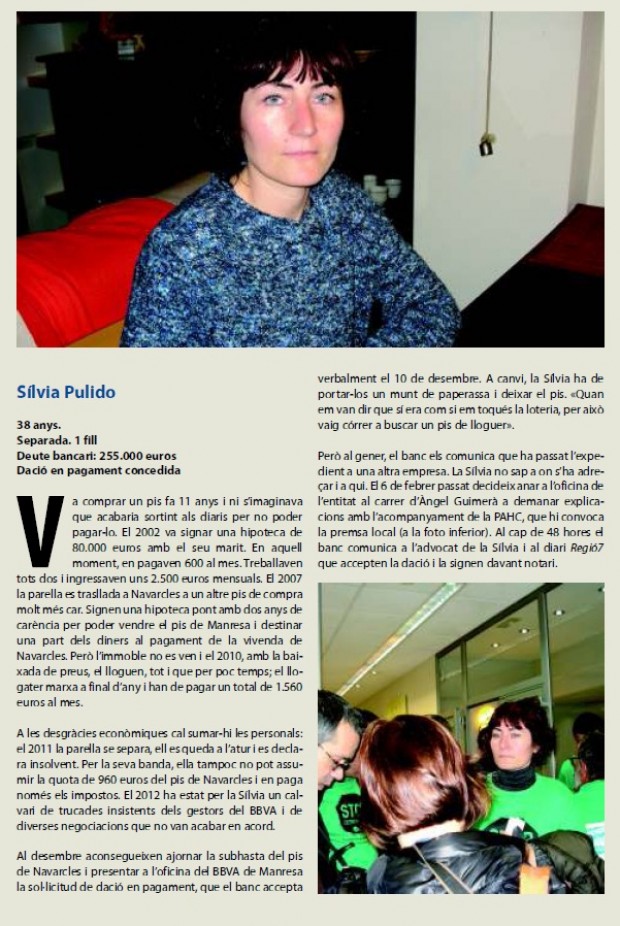 REPORTATGE-DESNONAMENTS. El drama de tantes persones que han hagut de deixar casa seva per no poder pagar la hipoteca ha desencadenat l’alarma social. Arreu sorgeixen plataformes d’afectats que s’hi han